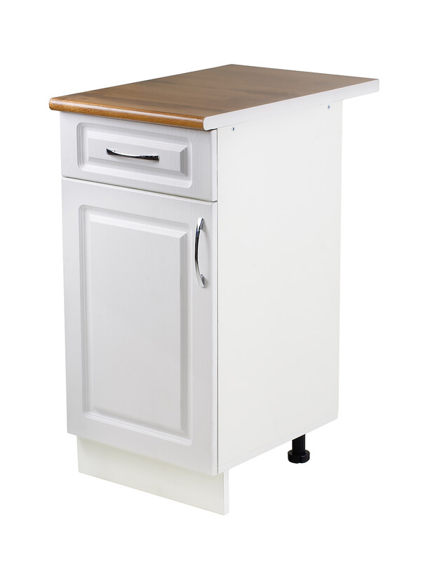 Рабочий стол 40 Ясень Белый (1 дверь + 1 ящик) фасад МДФ столешница цвет (Дуб Вотан) SANTREK HOME