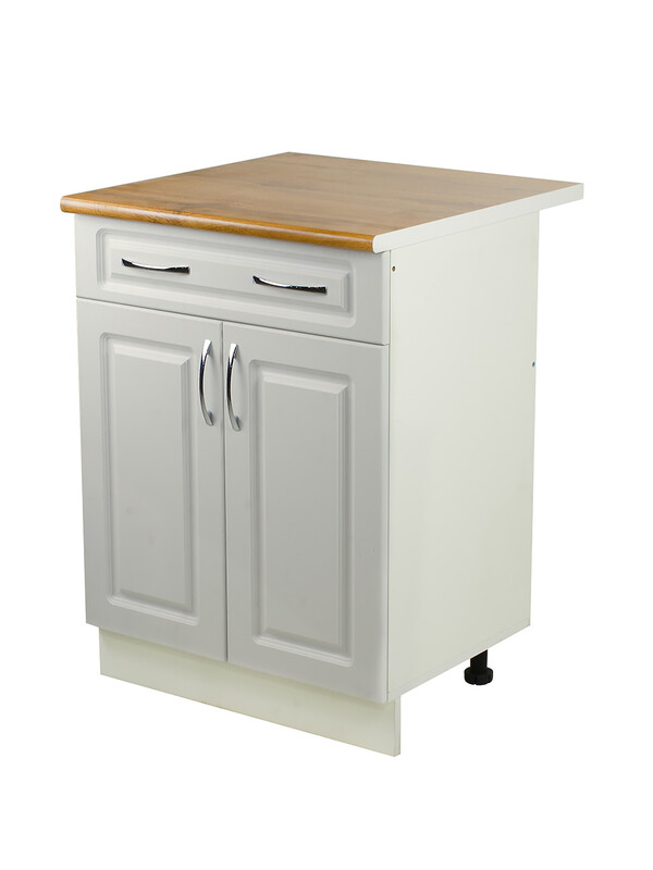 Рабочий стол 60 Ясень Белый (2 двери + 1 ящик) фасад МДФ столешница цвет (Дуб Вотан) SANTREK HOME