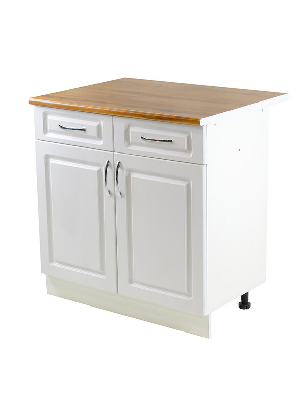 Рабочий стол 80 Ясень Белый (2 двери + 2 ящик) фасад МДФ столешница цвет (Дуб Вотан) SANTREK HOME