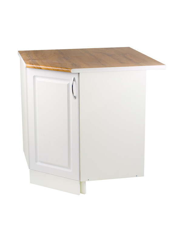 Рабочий стол угловой 85*85 (1 дверь) Ясень Белый фасад МДФ столешница цвет (Дуб Вотан) SANTREK HOME