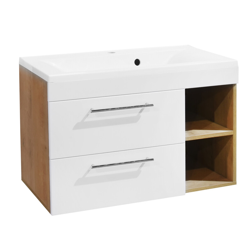 Подстолье SANTREK HOME "Афина-80" 2ящ. (бел.глянец/дуб бунратти) подвесное под умыв. "Paola Elegante 800" 800*500*475 *