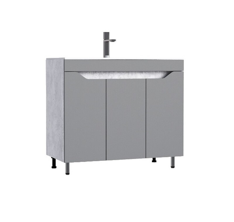 Подстолье SANTREK HOME "Фанта-90" (Серый софт/Цемент светлый) 3 двери под умывальник "Paola Elegante 90" 895х800х450