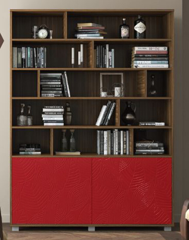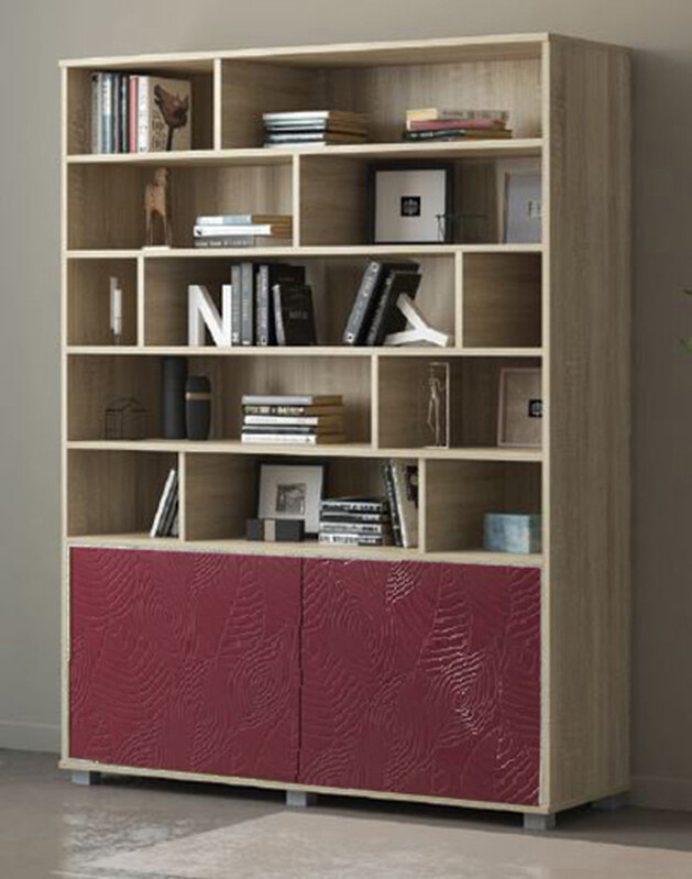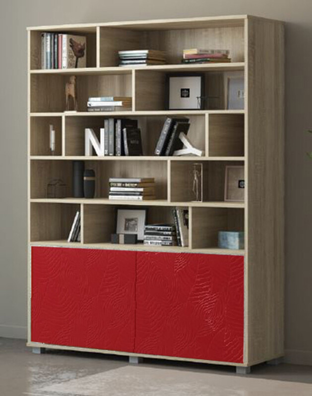 BAER. Стеллаж "Шарм" 2120х1246х430 Дуб Бурбон/Красный глянец