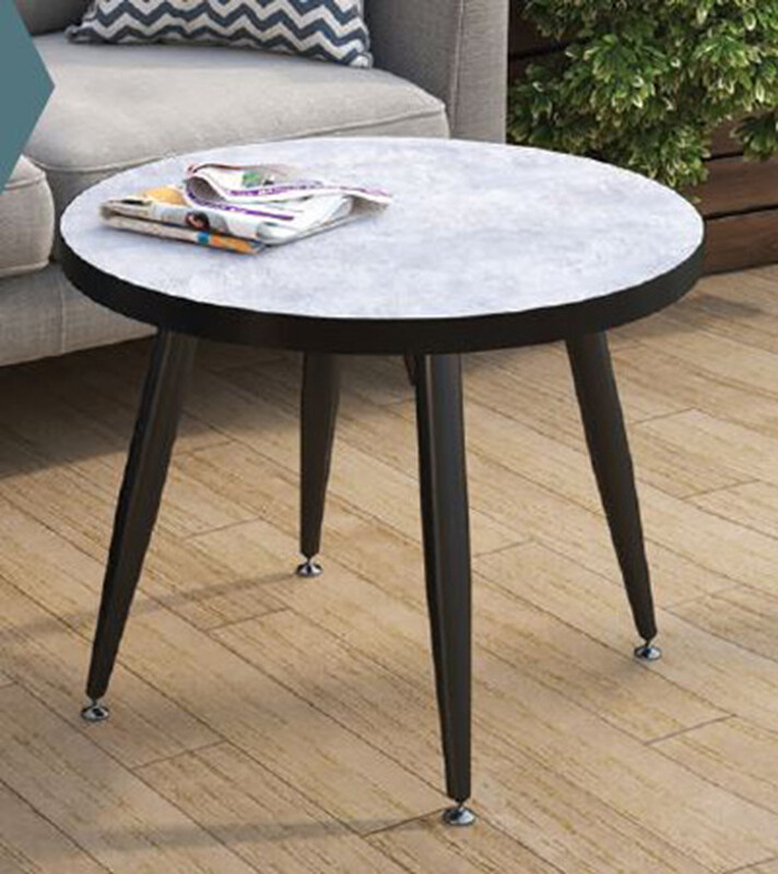 BAER. Журнальный стол "Цемент светлый" круглый 60 см (столешница 22 мм, опоры чёрные матовые)