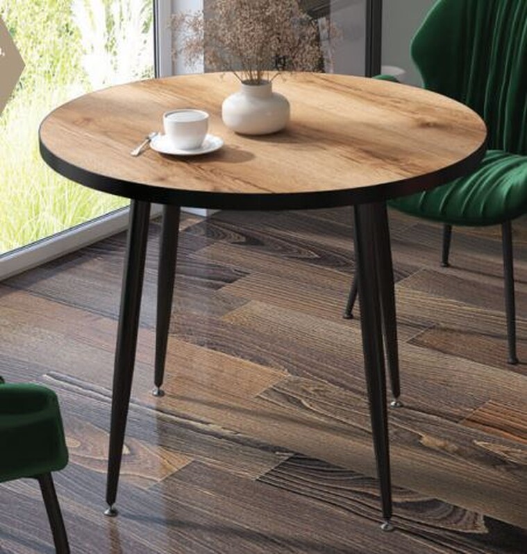 BAER. Стол "Дуб Делано" круглый 80 см (столешница 22 мм, опоры чёрные матовые)