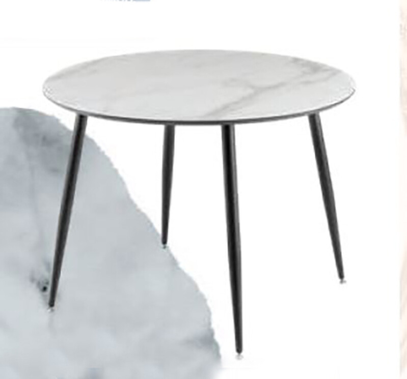 BAER. Стол "АРТУР" 100+39 см, Белый Мрамор (опоры чёрные матовые)