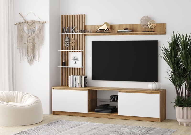 МК Стиль. Соло 16 Тумба под ТВ (ЛДСП) Корпус - Белый (Гладкий) Фасад МДФ - глянцевая Белый (1 место) ТЭ710 КАТЕГОРИЯ А