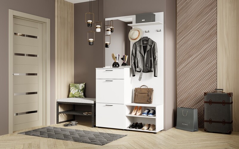 МК Стиль. Монтана Прихожая Белый Гладкий (3 места) УИ986 КАТЕГОРИЯ А
