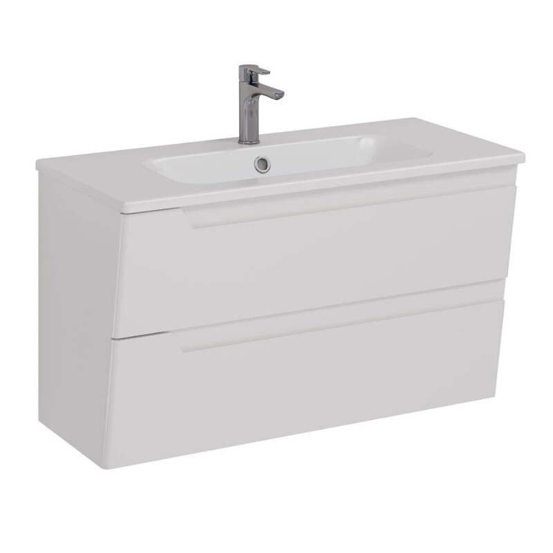 Тумба Lemark MIANO, 100 см под 1 раковину "Эйфория-100" (или столешницу Miano 100), подвесная, 2 ящика, цвет корпуса, фасада: Белый глянец LM06M100T