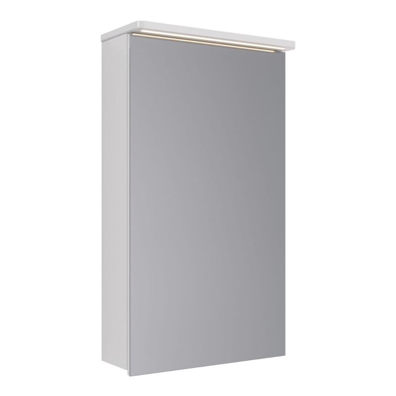 Шкаф зеркальный Lemark ZENON 45х80 см 1 дверный, петли слева, с козырьком-подсветкой, с розеткой, цвет корпуса: Белый глянец LM45ZS-Z