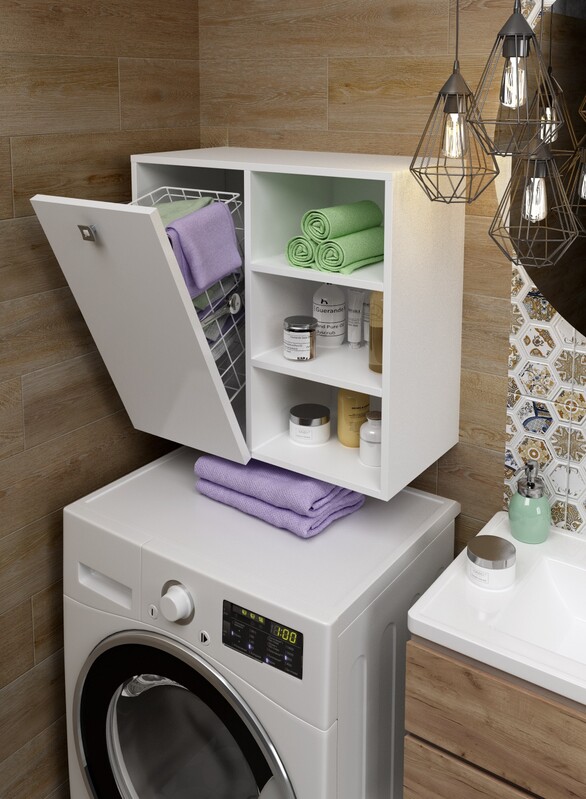 Шкаф подвесной SANTREK HOME (Белый глянец) 1 дверь с КОРЗИНОЙ Правый 300х1114х300