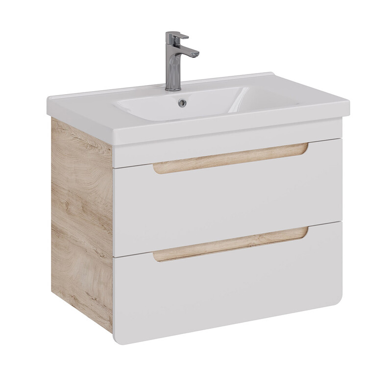 Тумба Lemark OLIVIA 80 см подвесная (под ум. Гармония 80 или столешницу Olivia 80) 2 ящика, корпус: Дуб кантри, фасада: Белый глянец LM08OL80T