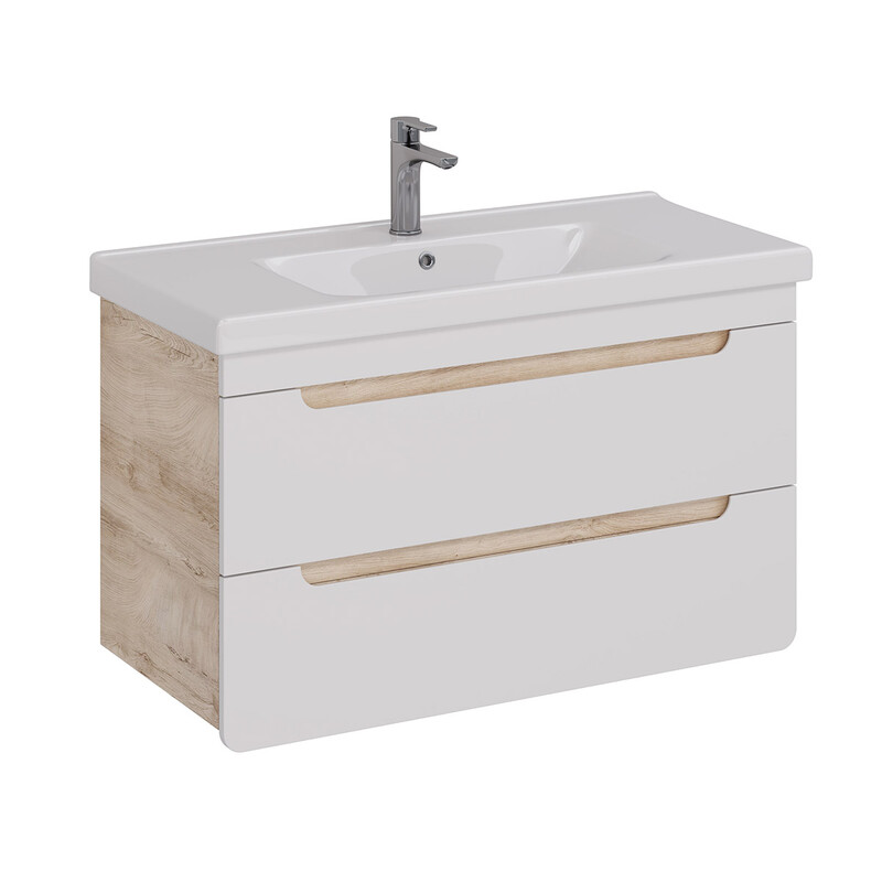 Тумба Lemark OLIVIA 100 см подвесная (под ум. Гармония 100 или столешницу Olivia 100) 2 ящика, корпус: Дуб кантри, фасад: Белый глянец LM08OL100T