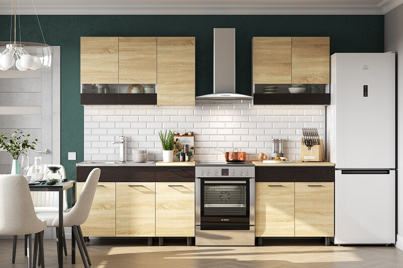 SV. Кухня "КГ - 2(2000)" Корпус Белый Фасад Дуб Сонома/Дуб Венге СТ Дуб Сонома 2000х846/556х600/296 (6 мест)