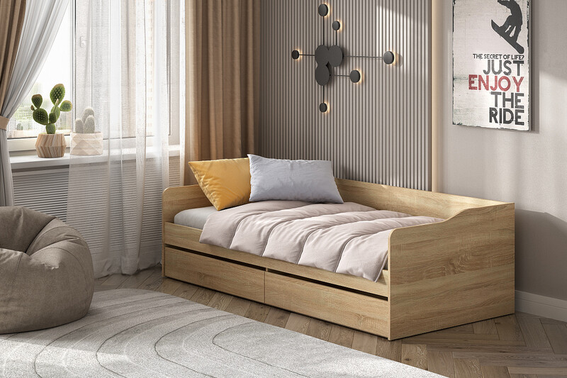 SV. Кровать "КР 1" (универсальная) Дуб Сонома 2032*600*940 (2 места) БЕЗ ОСНОВАНИЯ
