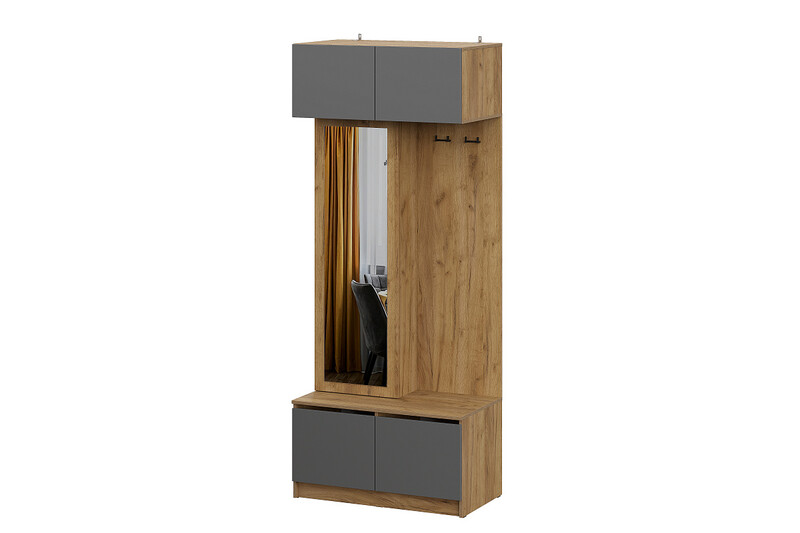 SV. МС "Авиньон" Вешалка с зеркалом Дуб Крафт Золотой/Графит серый (4 места)*