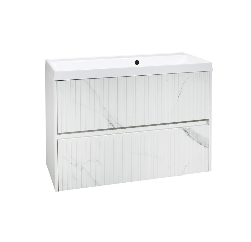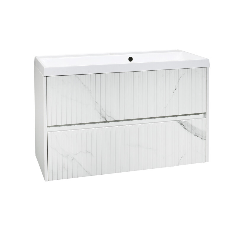Подстолье SANTREK HOME "АДЕЛАИДА Лофт-90" ПОДВЕСНОЕ, 2 ящика бел. мрамор/белый под ум. "Paola Alba 900" 895х550х445