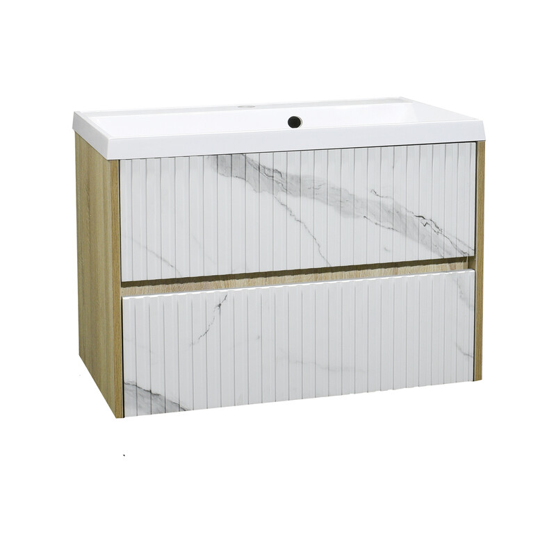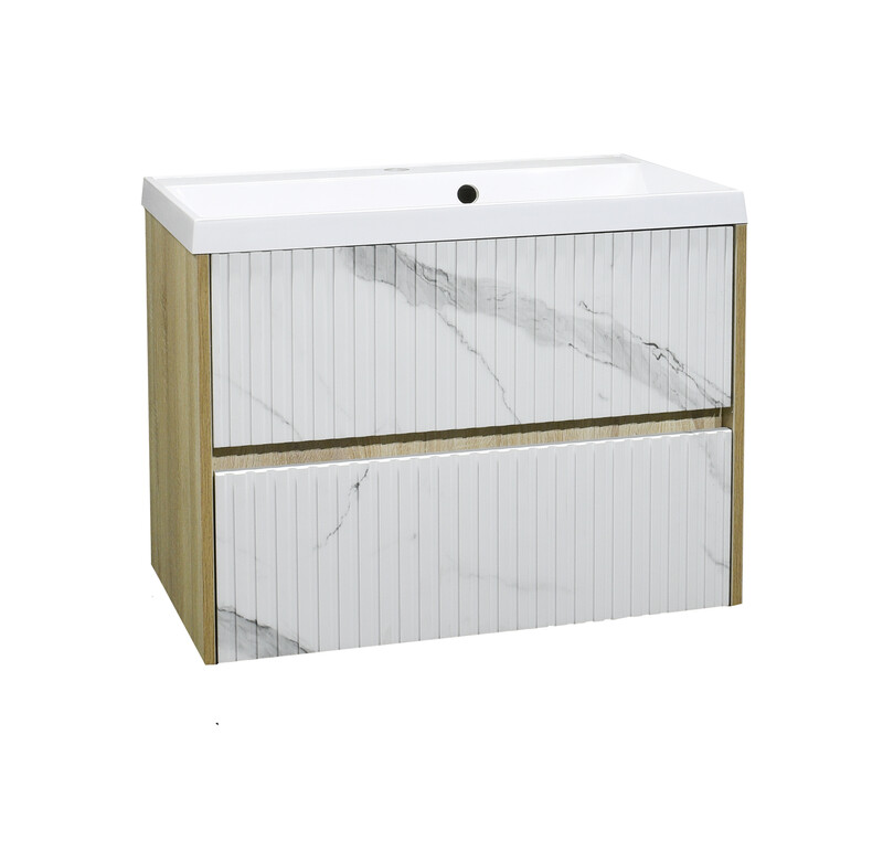Подстолье SANTREK HOME "АДЕЛАИДА Лофт-80" ПОДВЕСНОЕ, 2 ящика бел. мрамор/св. Дерево под ум. "Paola Alba 800" 795х550х445