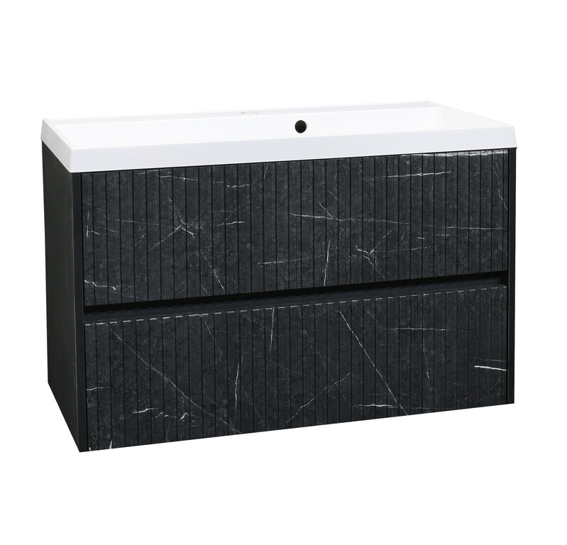 Подстолье SANTREK HOME "АДЕЛАИДА Лофт-90" ПОДВЕСНОЕ, 2 ящика темн. мрамор/антрацит под ум. "Paola Alba 900" 895х550х445