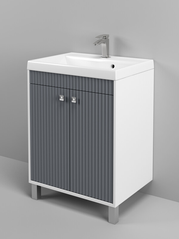 Подстолье SANTREK HOME "Лион-60" (Белый/Серый) 2 двери под умывальник "Paola Alba 60 / Paola Torino 60" 600*780*430