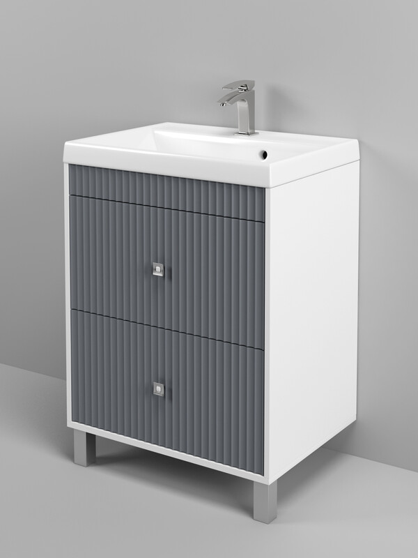 Подстолье SANTREK HOME "Лион-60" (Белый/Серый) 2 ящика под умывальник "Paola Alba 60 / Paola Torino 60" 600*780*430*