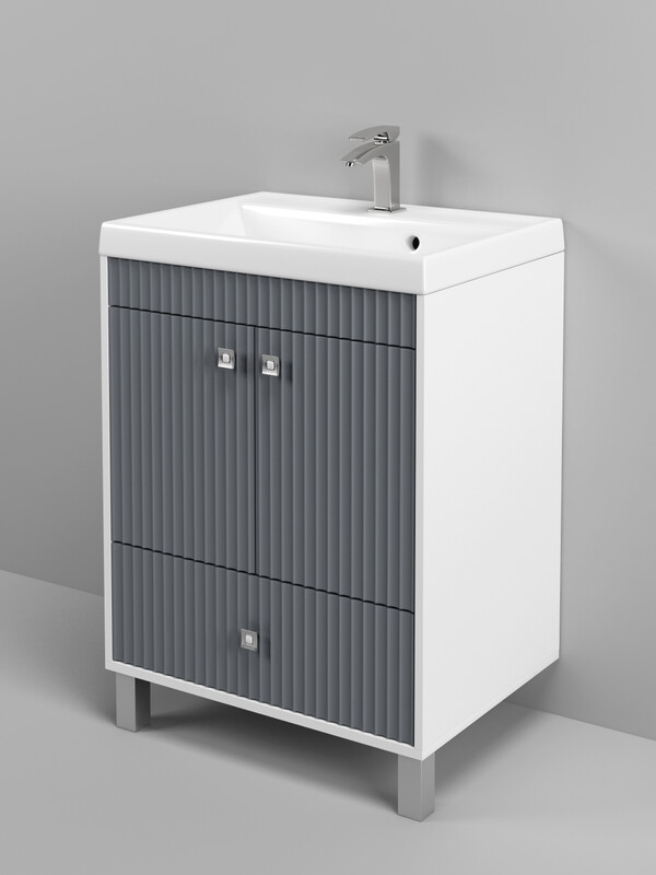 Подстолье SANTREK HOME "Лион-60" (Белый/Серый) 2 двери 1 верхний ящик под умывальник "Paola Alba 60 / Paola Torino 60" 600*780*430
