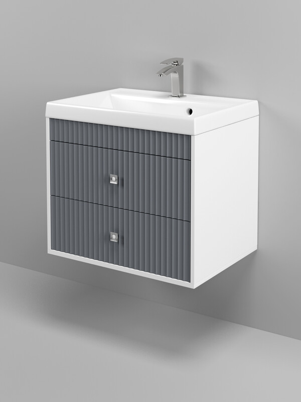 Подстолье подвесное SANTREK HOME "Лион-60" (Белый/Серый) 2 ящика под умывальник "Paola Alba 60 / Paola Torino 60" 600*480*430