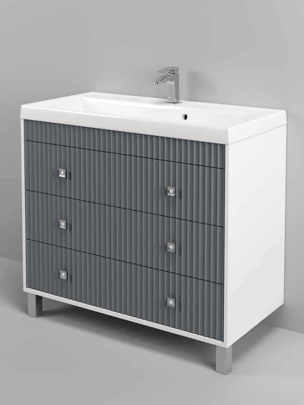 Подстолье SANTREK HOME "Лион-90" (Белый/Серый) 4 ящика 1 дверь под умывальник "Paola Alba 90" 900*780*430*