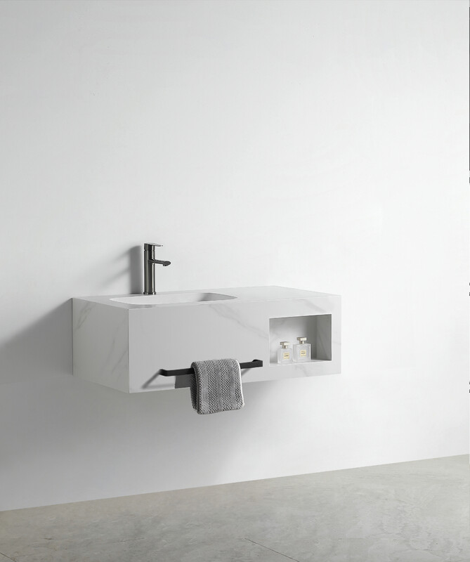 Раковина со столешницей из керамогранита HOLLER ALBA 1000 (07-100-Matte Grey Dawn) белый мрамор, подвесная