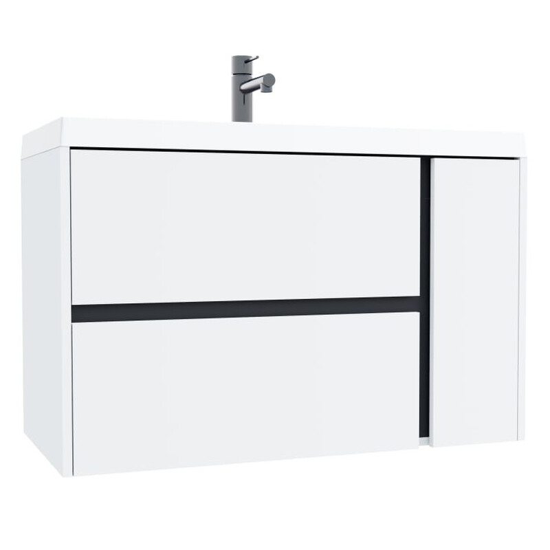 Подстолье подвесное SANTREK HOME "Лунар-90" (Белый монохром/Черый) 1 дверь 2 ящика под умывальник "Paola Alba-90" 897х550х448