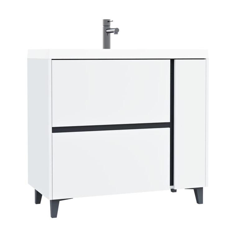 Подстолье SANTREK HOME "Лунар-90" (Белый монохромный/Черный) 1 дверь 2 ящика под умывальник "Paola Alba-90" 897х800х448