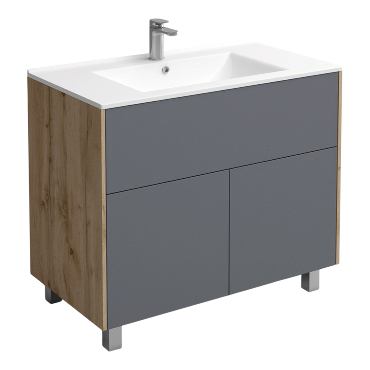 Подстолье Holler "Chic-100" Серый камень 1 ящик 2 двери под раковину "Holler E100" 1012х780х450