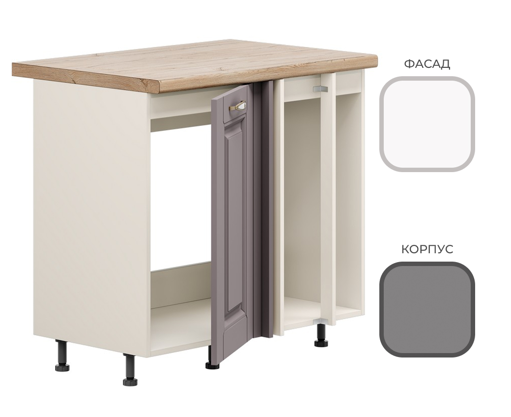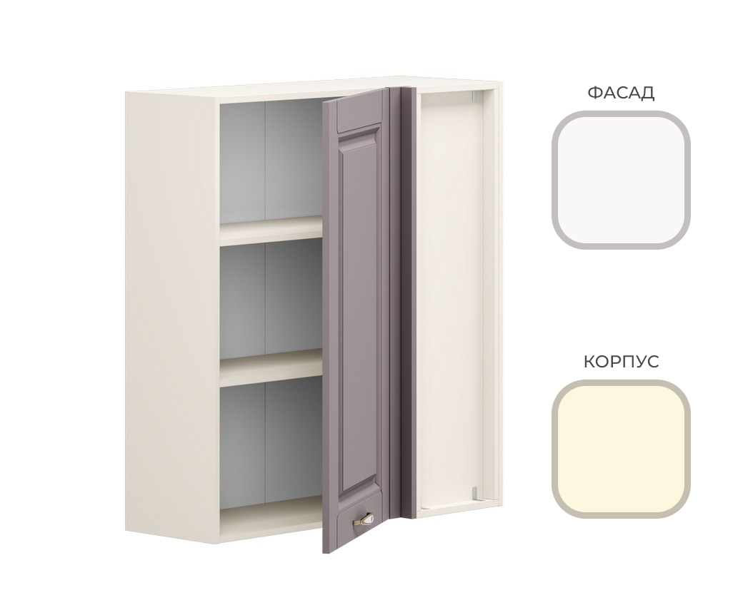 МК Стиль. Шкаф навесной ШП-900_Н10 (угл.1 ств) CHALET Корпус - Миндаль Фасад МДФ - матовая Ясень Дип белый (2 места) МИ940+УН305