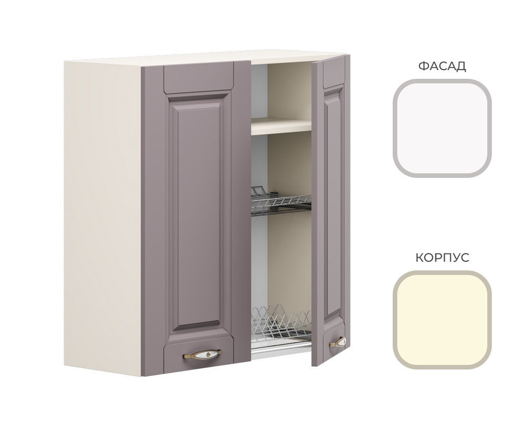 МК Стиль. Шкаф навесной ШСВ-800_Н8 (сушка) CHALET Корпус - Миндаль Фасад МДФ - матовая Ясень Дип белый (3 места) МК107+УН521+МД921