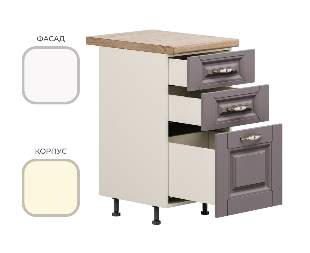 МК Стиль. Стол С3ЯК-400 (3 ящ.) CHALET Корпус - Миндаль Фасад МДФ - матовая Ясень Дип белый МИ892+УЛ136