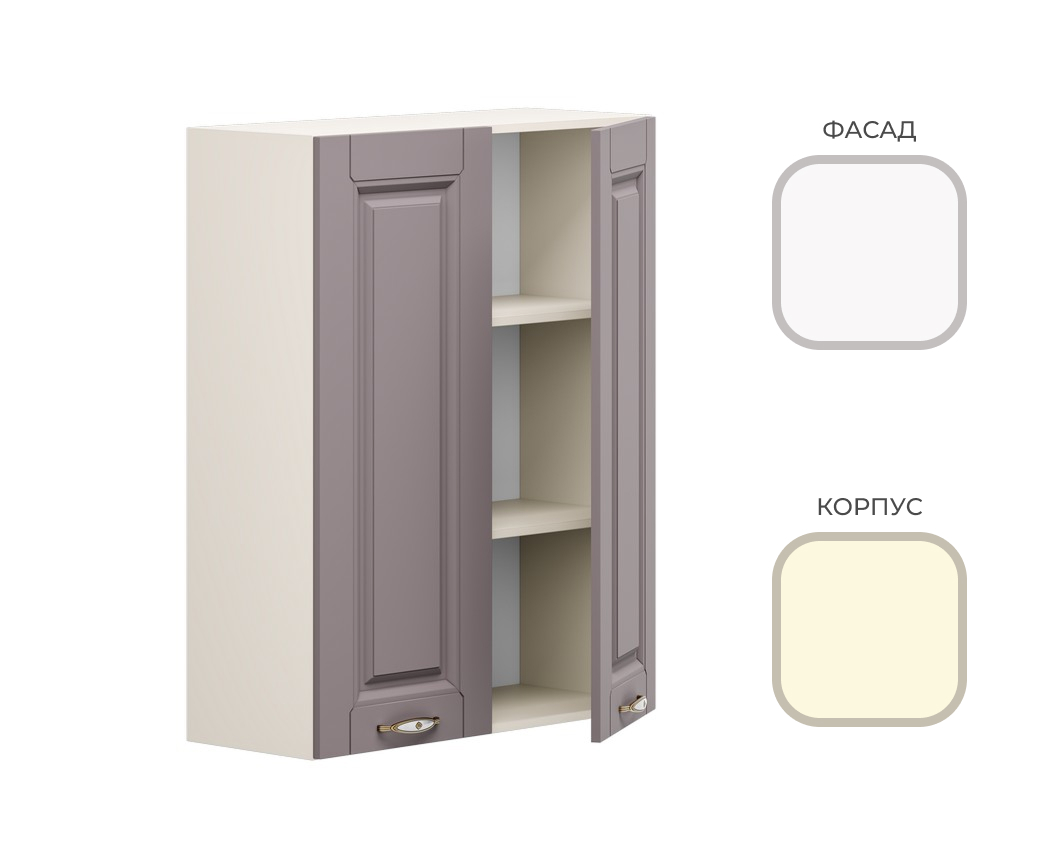 МК Стиль. Шкаф навесной Г-600_Н8 (с подъём.ств) CHALET Корпус - Миндаль Фасад МДФ - матовая Ясень Дип белый (2 места) МИ968+УЛ809