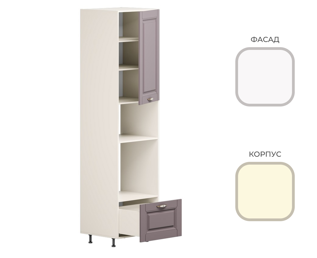 МК Стиль. Шкаф ПДМ-600_Н10 (пенал дух.шк+свч.) CHALET Корпус - Миндаль Фасад МДФ - матовая Ясень Дип белый (3 места) МИ846+УК310