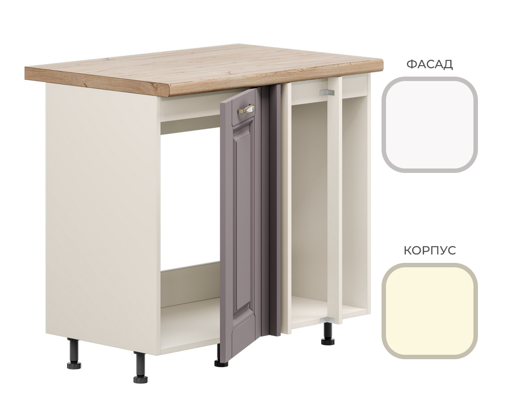 МК Стиль. Стол МП-1000 (угл. 1ств.) CHALET Корпус - Миндаль Фасад МДФ - матовая Ясень Дип белый МИ862+УК652