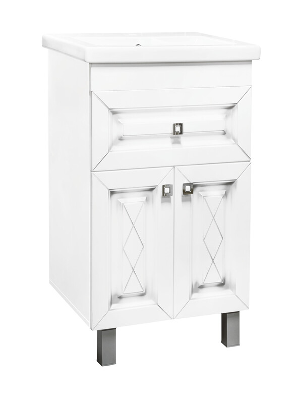Подстолье SANTREK HOME "Винтаж-50" (Белый с патиной) 2 двери 1 верхний ящик под умывальник "Como-50" 500х780х380