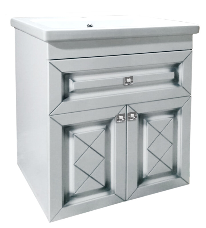 Подстолье SANTREK HOME "Винтаж-60" (Белый с патиной) 2 двери 1 верхний ящик под умывальник "Como-60" 600х780х430