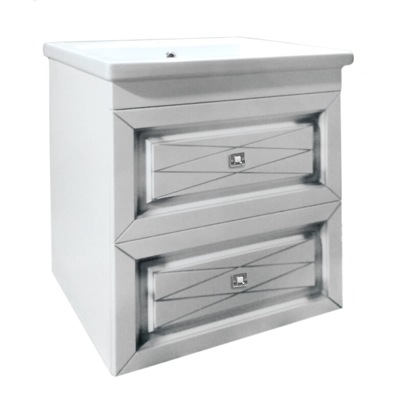 Подстолье подвесное SANTREK HOME "Винтаж-60" (Белый с патиной) 2 ящика под умывальник "Como-60" 600х480х430*