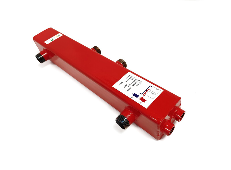 Гидравлическая стрелка функционирует только в сочетании с насосом отопления в первичном контуре (газовые настенные котлы в комплексной комплектации поставляются с вмонтированным циркуляционным насосом) и одним дополнительным насосом отопления во вторичном контуре.
