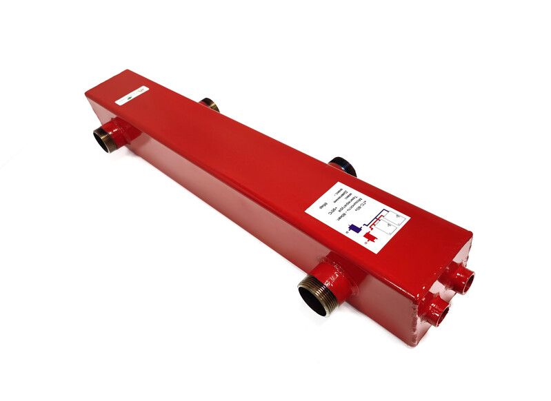 Гидравлическая стрелка функционирует только в сочетании с насосом отопления в первичном контуре (газовые настенные котлы в комплексной комплектации поставляются с вмонтированным циркуляционным насосом) и одним дополнительным насосом отопления во вторичном контуре.