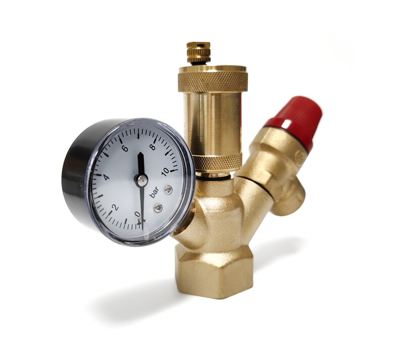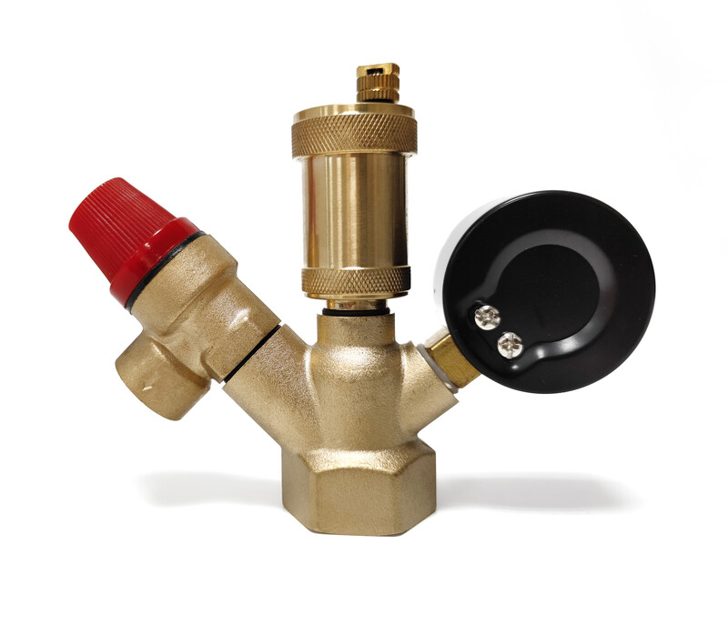 Группа безопасности СТК 1" латунь предназначена для предотвращения аварийных ситуаций и их контроля, которые могут быть связаны с закипанием теплоносителя в системе котла.