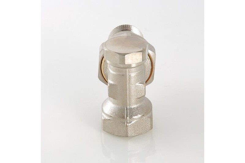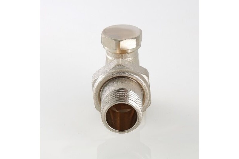 Угловой радиаторный клапан. Основное назначение – настройка расхода теплоносителя через отопительный прибор при балансировке системы. Наличие полусгона позволяет монтировать и демонтировать клапан без демонтажа трубопровода. Ремонтопригодный. Пропускная способность клапана не зависит от направления потока. Рабочая температура – до 130 °С, давление – до 10 бар. Резьба присоединений – внутренняя/наружная. Клапан снабжен дополнительным уплотнением из EPDM.
