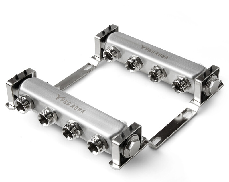 Коллектора из нержавеющей стали AISI 304 с увеличенным межосевым расстоянием 50 мм предназначены для групповой установки квартирных водосчетчиков или теплосчетчиков в этажных узлах учета многоквартирных зданий. По средствам этажных коллекторных узлов реализуют горизонтальную разводку системы отопления, которая позволяет осуществить индивидуальный учет воды и тепла.