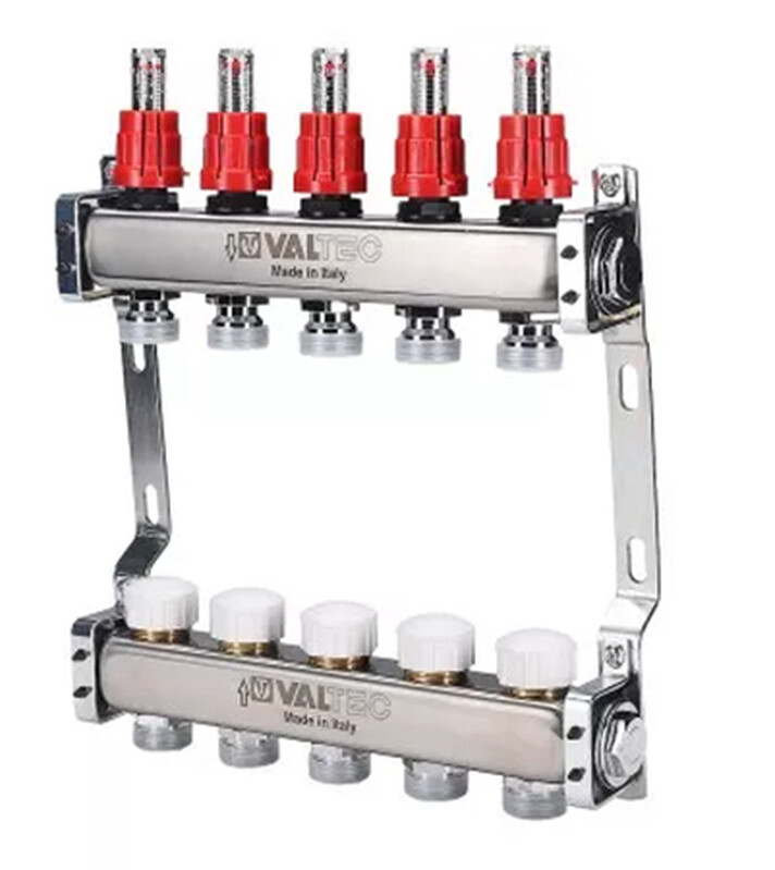 Блок коллекторов VALTEC,с ручными регулировочными клапанами1"х8 вых Евроконус 3/4 VTc.582.EMNX.0608