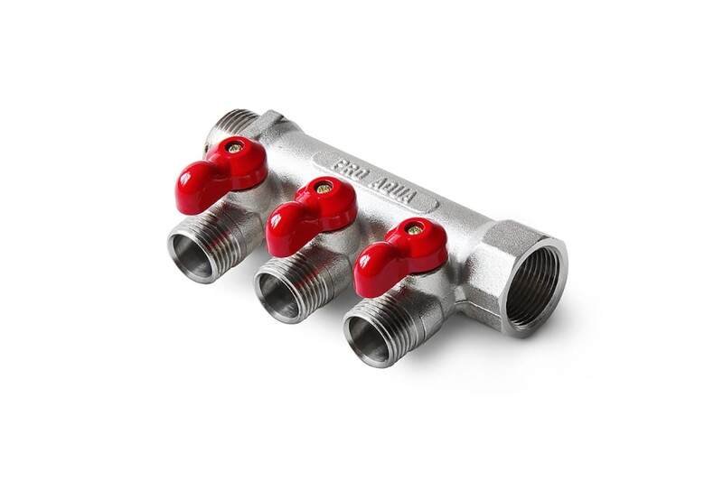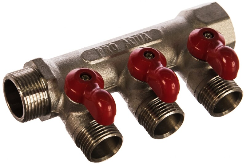 Коллектор латунный с шаровыми кранами 3 выхода, 3/4 х 1/2 V100.03-m20-f20 PRO AQUA