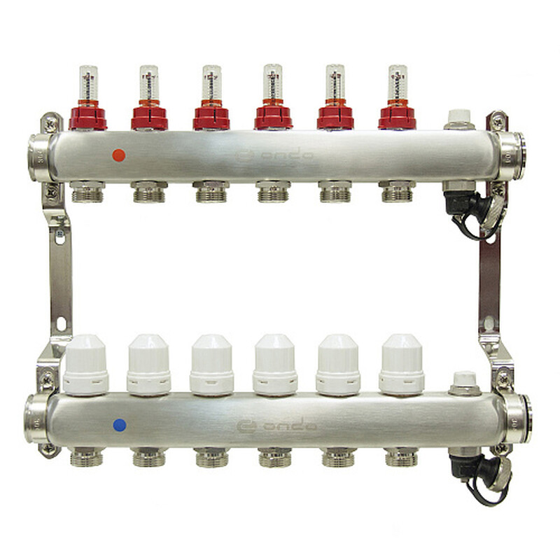 СТМ. Коллекторная группа ONDO нерж сталь 4 вых. в сборе с термостатич. и запорными клапанами OKGSP004