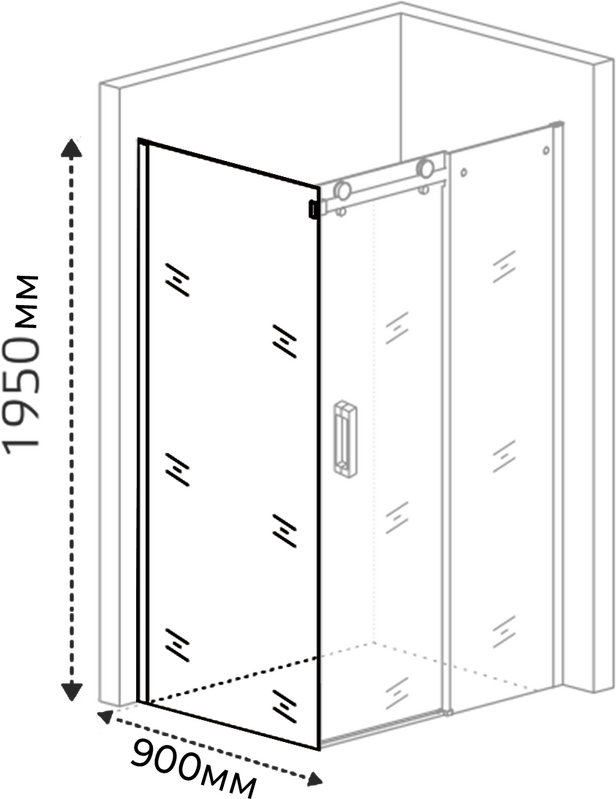 Боковая часть душ. ограждения SANTREK AQUA Evo- SP-900-C-Chrome (NKH6310) 900*1950 стекло Прозр. 8мм, профиль Хром